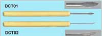 Trim, carve and make cut-out designs in pottery and greenware. The thin tapered stainless steel double edged blade is made for hard