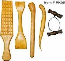 8 basic tools. includes, boxwood pottery tools, ribbon tools, potter's needle, loop tools, ribs, steel scraper, clay cutter and sponge. Ideal