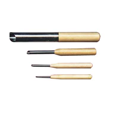 HC02 1/4" HC03 3/16" HC04 1/8" HC05 1/2" HC06 5/16" Easy tools for cutting holes in wet, thick walled greenware, cutting tubes are sharp polished set in hardwood handles. |