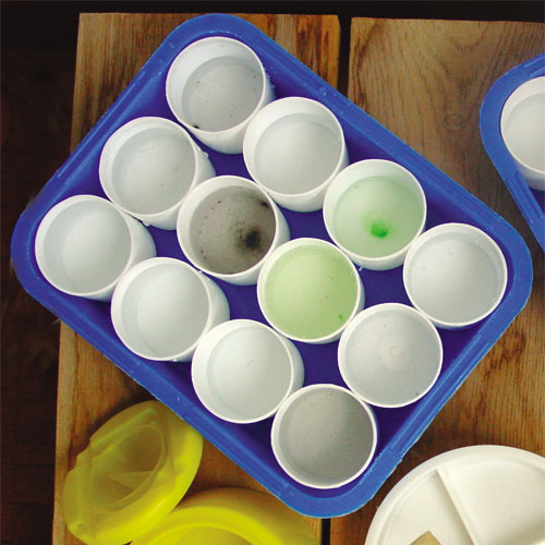 Plastic carring tray with 2" dia pots, perfect for classroom use.