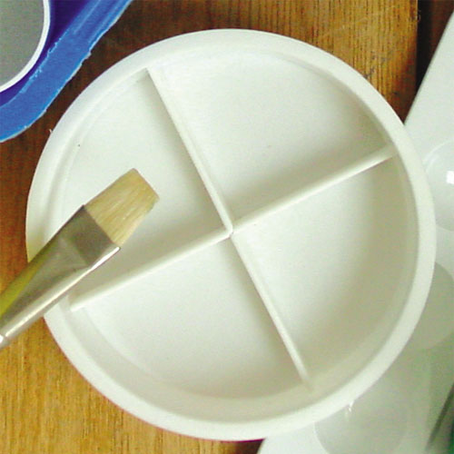 4 divisions plastic tinting saucer. 4-7/8" dia.
