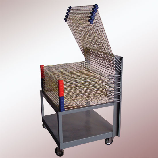 Mesh size: 45*50mm Layer: 17 Mesh Gap: 25mm All steel construction drying rack. With a special designed space for storaging works. Fully assembled with four large casters to push rack easily. Colored plastic bumper. |