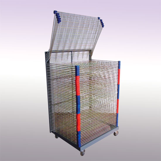 Mesh size: 90*110mm Layer: 50 Mesh Gap: 25mm 50 layers steeling drying rack for holding paper, drawing boards, masonite panel or rigid stock up to 1" thick. Features four large canisters and colored plastic bumpers. |