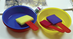 3 different color bowls with 3 size sponge brush set