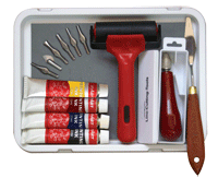 *4pc 22ml Printing Ink(color include: black, red, yellow, blue) *6 Lino Cutters and 1 Handle *1pc Baren Dia. 4'' *1pc Box For Lino Cutters & Handle *1pc ''Breeze Cut" Lino Block 6" x 8'' *1pc Hard Rubber Brayer Dia. 1'' Width: 4'' |
