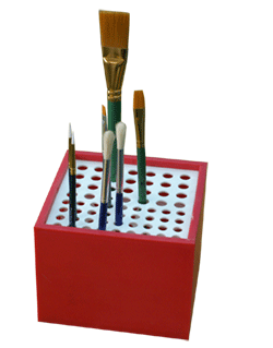 A cubical plastic brush stand which holds 64 brushes, 36 small holes(Dia. 0.8cm) and 28 bigg ones (Dia. 0.9cm) for brushes of different dimensions. | |