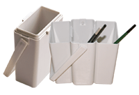 tanks for brush washing. When not used, the 3 tanks can be stacked together for space saving. A handy handle equipped for easy carrying. |