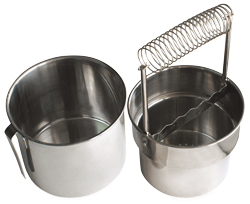 This brush washer is made of stainless steel. It features a lift-out receptacle, keep excess paints below and clean fluid above its hold. Beside the spiral for rest the brush, it also has a brush rest at the middle. There is an hanging hook for attach the brush washer. | |