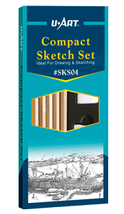 This set includes: 6 sketch pencil s, 1vinyl eraser, 1 pencil sharpener. All comes in a hangable card box | |