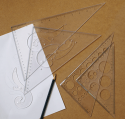 Set of 2 crystal clear triangles are made of 2.3 mm thick plastic, with finger lifts. Both 30¡ã/60¡ãand 45¡ã/90¡ã triangles are available. Both 24 cm in length with metric calibrations include several circles for drawing convenience. This excellent school geometry set is transparent for easy use. PLASTIC TRIANGLE & CURVE SET WITH INK EDGE TR03 Made of transparent plastic, 2.5mm thick with double-bevel inking edge. Both have inch and metric calibrations for all measuring needs. Two styles are available: 45¡ã/90¡ãand 30¡ã/60¡ã, in 12" length. They also include two removable french curves offer irregular curves. Perfect for home, school, or office. |