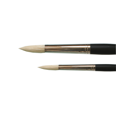 'Innovative' line bristle brushes made of highest quality pure white Chunking bristle hairs mounted on Nickel plated ferrules with beautifully lacquered handles. They are made by our experienced craftman, who need years training to be able to make these brushes. These carefully chose bristles have deeply flagged and interlocked tips for maximum color carrying capacity. Brushes are perfectly balanced and shaped to fit the hand using only the best quality materials, making painting an exciting and stimulating experience.