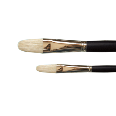 'Innovative' line bristle brushes made of highest quality pure white Chunking bristle hairs mounted on Nickel plated ferrules with beautifully lacquered handles. They are made by our experienced craftman, who need years training to be able to make these brushes. These carefully chose bristles have deeply flagged and interlocked tips for maximum color carrying capacity. Brushes are perfectly balanced and shaped to fit the hand using only the best quality materials, making painting an exciting and stimulating experience.