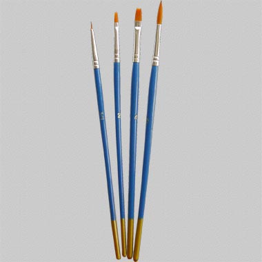 Using high quality nylon filament, which are excellent mix of 2 or 3 different diameter fiber for better spring and holding of paints. These are good tools for different media. Head: Gold Nylon Handle: Blue handle/w gold tip Ferrule: Aluminum |