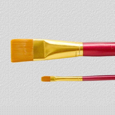 of 2 thickness synthetic filaments to most closely duplicate the performance of natural hair. Durable and Versatile. Excellent spring, fine chisel edge. Use in acrylic, oil, watercolor and all media. Hair: Gold Nylon Ferrule: Gold Color Aluminum Handle: Short Mauve Handle/w White Tip |