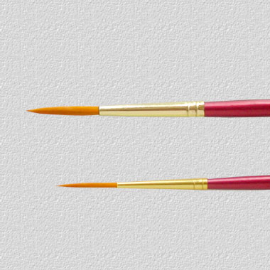of 2 thickness synthetic filaments to most closely duplicate the performance of natural hair. Durable and Versatile. Excellent spring, fine chisel edge. Use in acrylic, oil, watercolor and all media. Hair: Gold Nylon Ferrule: Gold Color Aluminum Handle: Short Mauve Handle/w White Tip |