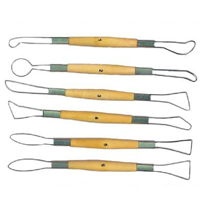 Perfect for sculptor and ceramist. Varnished hardwood handles and metal ferrules. Hardened stainless spring steel cutting ends feature half round ribbon. The variety of shapes fill every need for cutting and scraping to trimming and footing. |