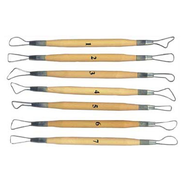 One end of ribbon tools, another end of modeling tools, these 8" ribbon tools feature boxwood handles that can be used to smooth clay, as well as to be used in trimming cutting clay. |