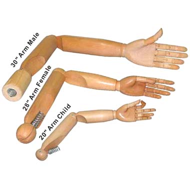 AM20-28 28" Female, left AM21-28 28" Female, right AM10-20 20" Children, left AM11-20 20" Children, right These arms accurately proportioned and anatomically correct. Beautiful natural seasoned hardwood, all ball and socket joints can be manipulate to every natural positions. |